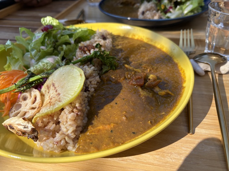 私はスパイスの効いたカレーをいただいたのですが、副菜も一つひとつ丁寧に作られていて、とても美味しかったです。