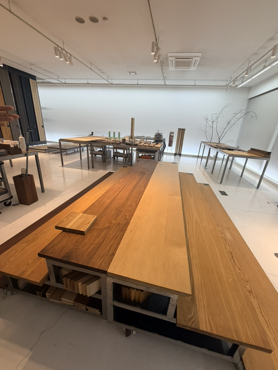 先日、浜松にある無垢材メーカー「マルホン」さんのショールームに見学に行ってきました。