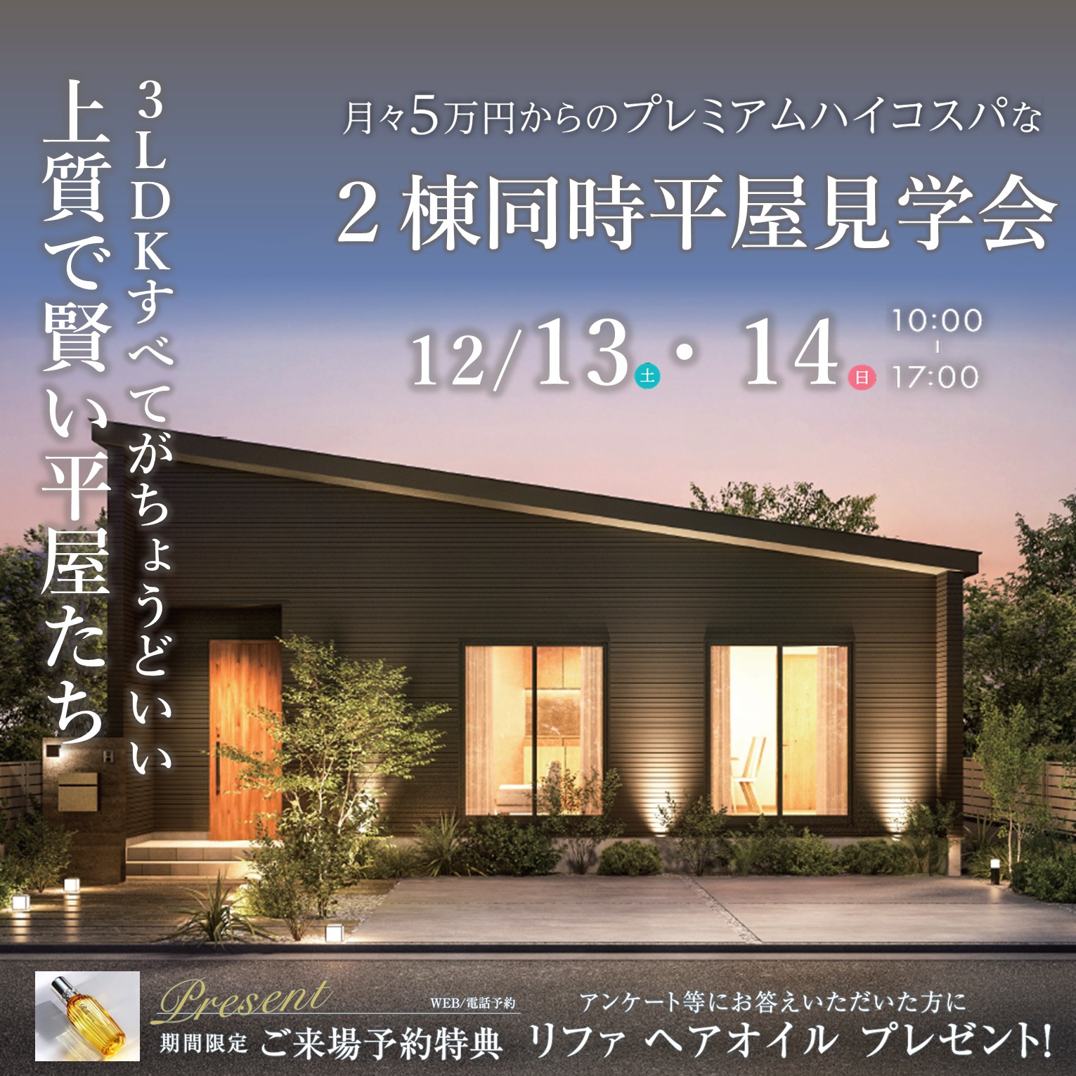イベント詳細ページへ【12月】2棟平屋同時見学会