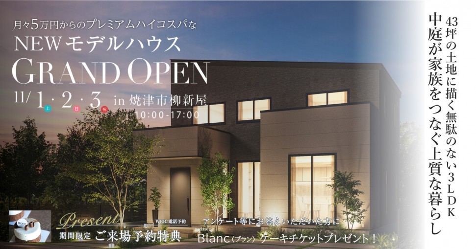 家賃並みの家づくりを叶えるジャストラッキーハウスが、11月1日(土)~11月3日(祝)に新モデルハウス完成記念イベントを開催します。