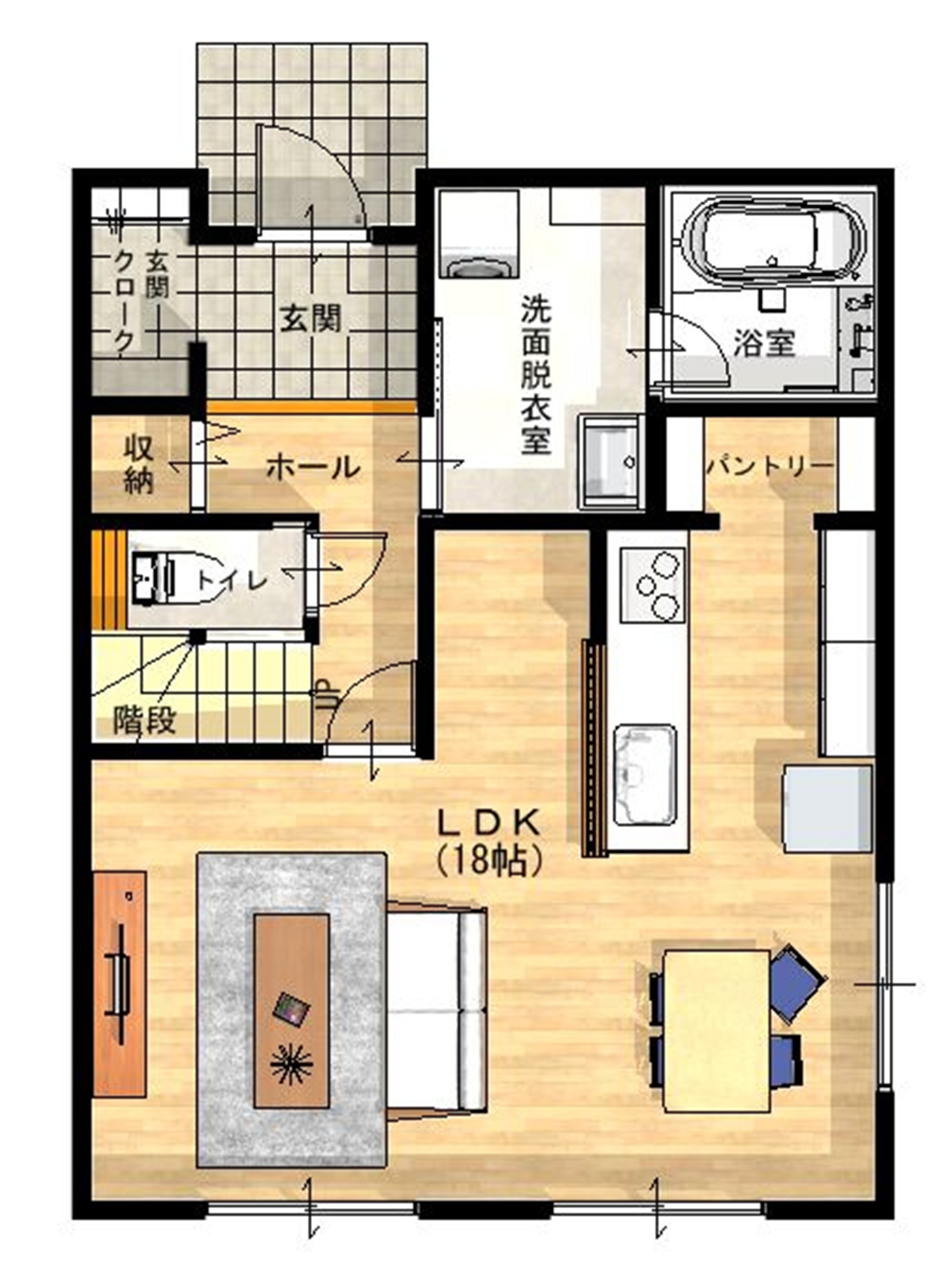 キッチン横のパントリー & 玄関クローク 「これがあるから片付く!」と大好評のパントリーを完備。玄関からすぐのクロークも、毎日の外出をスムーズにします。