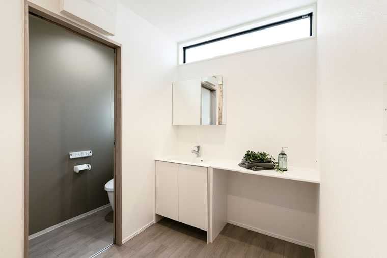 ご要望の多い独立洗面台は、見た目にもこだわりました。横並びのカウンターを設置し、朝の支度もはかどります。