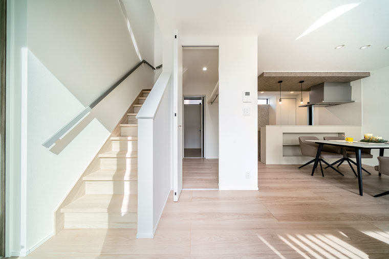 ランドリールーム、キッチン、リビング、階段など、どこからでも行きやすい生活しやすい動線は必見です!